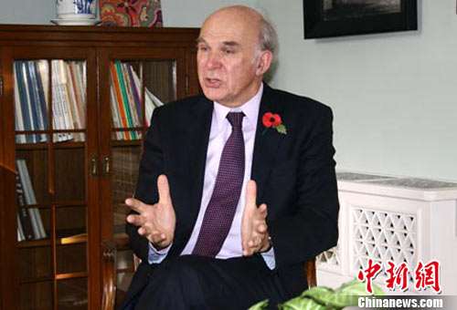 中新網(wǎng)11月11日電 英國商務(wù)、創(chuàng)新與技能國務(wù)大臣凱布爾更樂意被稱“博士”,而非“大臣”。他說自己是一個經(jīng)濟學家,但同時也是政客。對于中英經(jīng)濟合作前景,凱布爾表現(xiàn)了經(jīng)濟學家的理性和樂觀。而談到富有爭議的美國量化寬松貨幣政策,凱布爾卻更像一位政客。這位有著“多重身份”的英國高官11日上午在北京英國大使官邸接受了中新網(wǎng)專訪。