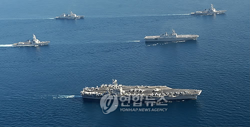 韓國軍方則投入7600噸級“世宗大王”艦、兩艘4500噸級驅(qū)逐艦(KDX-Ⅱ)以及巡邏艦、護(hù)航艦、戰(zhàn)斗支援艦和反潛飛機(jī)等參加演習(xí)。