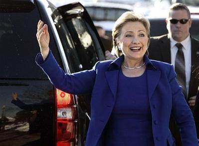美國總統(tǒng)大選民主黨候選人希拉里16日抵達(dá)威斯康星州后向支持者問候。