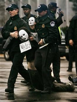 據(jù)香港《文匯報》報道,在美國國稅局大樓,100多名反戰(zhàn)人士企圖封鎖入口,其中數(shù)人甚至越過圍攔在門前靜坐。示威者稱,針對國稅局是因為它撥款資助伊戰(zhàn),警方到場后拘捕了32人,并迅速清場。