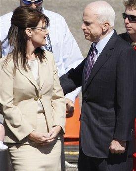 當(dāng)?shù)貢r(shí)間3日,麥凱恩在雙子城與競(jìng)選搭檔佩林見(jiàn)面。