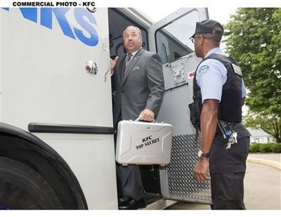 這只手提箱上掛了手銬,手銬則緊緊銬在曾服務(wù)于紐約市警局的安保人員迪特爾手上。迪特爾是肯德基公司專門聘請(qǐng)來(lái)保障這張獨(dú)家食譜的,他護(hù)送這張食譜時(shí)所搭乘的是防彈車。