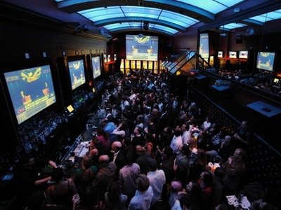 從紐約、洛杉磯到華盛頓,大街小巷都聚集了很多人,駐足觀看路邊大屏幕直播奧巴馬和麥凱恩的激辯。很多地方甚至因此造成了交通堵塞。