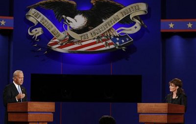 發(fā)表評論  中新網(wǎng)10月3日電 綜合報道,當(dāng)?shù)貢r間2日晚,美國副總統(tǒng)候選人辯論在密蘇里州的華盛頓大學(xué)展開。共和黨副總統(tǒng)候選人佩林與民主黨副總統(tǒng)候選人拜登就伊拉克戰(zhàn)爭問題展開激烈辯論。