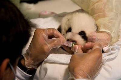 中新網(wǎng)10月22日電 綜合報(bào)道,亞特蘭大動(dòng)物園的獸醫(yī)21日給一只滿月的大熊貓幼仔做體檢。