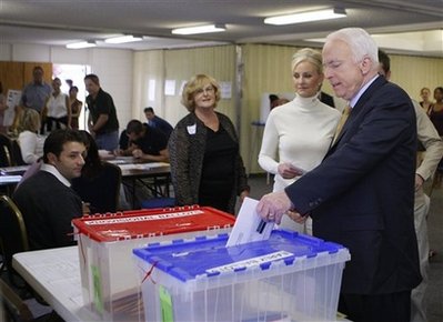 而那邊廂,麥凱恩也在妻子辛迪的陪同下在亞利桑那州進(jìn)行了投票。在民調(diào)中落后的麥凱恩被100名媒體人員所包圍,但他沒(méi)有回答記者們提出的問(wèn)題,其中包括:“你睡得如何?”他隨后離開(kāi)了鳳凰城的投票站。