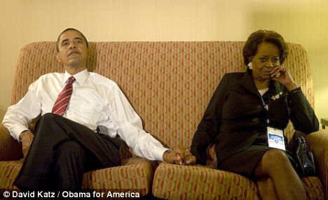競(jìng)選結(jié)果公布當(dāng)晚,奧巴馬和岳母一起等待結(jié)果