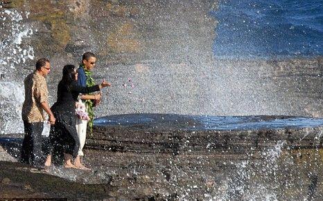而競選勝利后的繁雜事務,也使得奧巴馬未能飛回夏威夷,出席外祖母的葬禮。在上周二,奧巴馬終于能夠抽出時間,與祖母作最后告別。十年前,奧巴馬也在同一地方將母親的骨灰撒入大海。