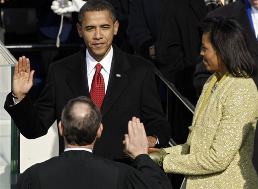 中新網(wǎng)1月21日電 當?shù)貢r間1月20日上午12點05分(北京時間21日凌晨1點05分),總統(tǒng)奧巴馬手按林肯當年宣誓時所用的《圣經》宣誓就職,美國最高法院首席大法官約翰•羅伯茨在一旁公正。隨后,奧巴馬發(fā)表就職演說。