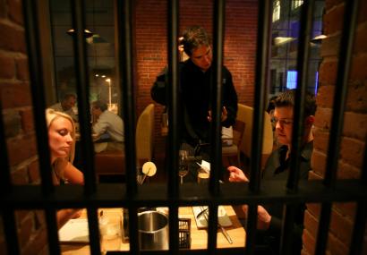 在另一間名叫“牢房”(Clink)的餐廳,食客可以從倉門與窗戶的原裝欄柵,向身著標(biāo)有犯人編號囚衣的男女侍應(yīng),點(diǎn)吃煙熏龍蝦濃湯或柑橘烤大蝦。 而酒店內(nèi)名為“假證明”(Alibi)的酒吧則建于監(jiān)獄內(nèi)昔日的酒鬼囚禁室。