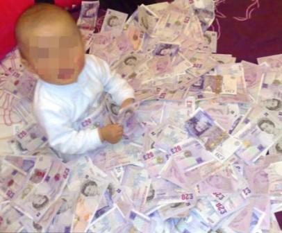 中新網(wǎng)7月23日電 家長(zhǎng)一般都給孩子玩具玩,但是羅馬尼亞人阿杜魯努卻讓他僅9個(gè)月的兒子在錢堆里打滾,只是他萬(wàn)萬(wàn)沒(méi)有想到一張兒子在錢堆里打滾的照片會(huì)成為自己日后的罪證。