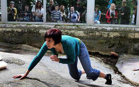 克萊克森稱,這一藝術(shù)展的宗旨之一,是想引起人們對世界各地野生狀態(tài)下瀕危靈長類動(dòng)物生存狀態(tài)的關(guān)注。英國演員安古斯·巴爾伯尼則身穿動(dòng)物園管理員的制服,在企鵝園圍欄外向困惑的游客們進(jìn)行著講解。他向游客解釋說:“這些舞蹈演員也是地球上一個(gè)特殊的種類,由于缺少藝術(shù)贊助,她們正在從地球上逐漸消失,她們也是瀕危物種之一!”(楊宗)