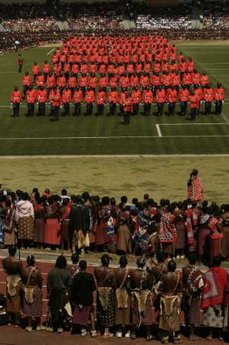 這場(chǎng)適逢國(guó)王40歲生日兼建國(guó)40年的“雙40”典禮,節(jié)目包括6萬(wàn)佳麗的御前獻(xiàn)舞、打鼓表演、閱兵巡禮,以及在王太后御苑舉行的“花園派對(duì)”等。連同特別為今次活動(dòng)購(gòu)入、用來接載國(guó)王等嘉賓的20輛豪華車、南非訂制的大蛋糕和宰殺120頭牛。
