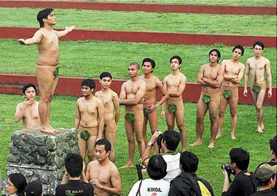 中新網(wǎng)12月15日電 據(jù)新加坡《聯(lián)合早報》報道,菲律賓大學日前為慶祝創(chuàng)校一百周年,在校區(qū)內舉行年度裸體活動。共一百名男性學生、老師和校友,僅穿著縫有綠葉的肉色內褲,輪流站在石臺上,張開雙手模仿校內知名裸體雕像,象征對真理和知識無止境的追求。