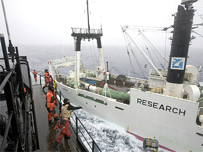 中新網(wǎng)12月29日電 據(jù)臺灣聯(lián)合新聞網(wǎng)報(bào)道,為阻止日本捕鯨船在南極捕撈鯨魚,美國環(huán)保組織海洋守護(hù)者協(xié)會的船只“史蒂夫•歐文”號的船員日前在南極洲莫森半島以北海域向日本捕鯨船“海幸丸”號投擲“臭彈”和裝有油漆的玻璃瓶。