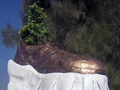 中新網(wǎng)1月30日電 伊拉克豎立了一個巨大的青銅鞋像雕塑,為的是向去年前美國總統(tǒng)布什到訪時(shí),向他擲鞋的伊拉克記者扎伊迪致敬。