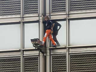 中新網(wǎng)2月18日電 據(jù)臺灣東森新聞網(wǎng)報道,法國“蜘蛛人”亞倫•羅伯特17日又出手了,他征服了香港的長江中心這棟總共有62層的大樓,只花了40分鐘,就徒手從一樓爬到屋頂,他希望此舉能夠喚起人們對全球暖化的關(guān)注。