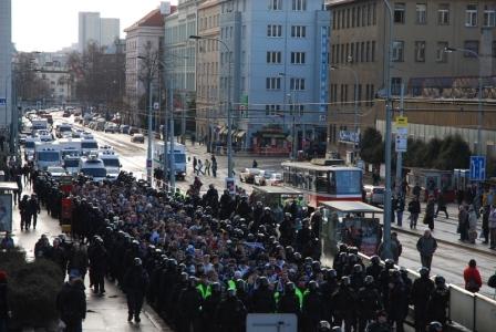 大約400名觀看足球聯(lián)賽巴尼克隊與布拉格斯拉維亞隊比賽的巴尼克隊球迷當天傍晚乘坐火車從386公里以外的俄斯特拉發(fā)市到達首都布拉格后,早已恭候在火車站外的大隊防暴警察押送他們步行3公里直接去斯拉維亞體育場。比賽一結束又立即重新把他們押送回火車上,讓他們馬上回家,禁止他們去首都市中心鬧事。當晚比賽巴尼克隊以0:1負于斯拉維亞隊,其間沒有發(fā)生大規(guī)模球迷騷亂,巴尼克隊球迷深夜2時回到家鄉(xiāng)。