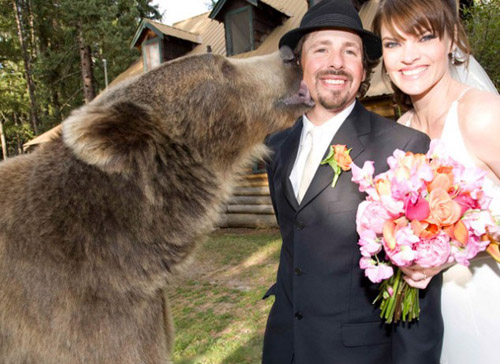 7年以來,安德森和灰熊布魯圖總是形影不離,他們可以說是名副其實(shí)的好兄弟。事實(shí)上布魯圖也非常喜歡和人相處,如今它已經(jīng)成為安德森家的一份子,有時(shí)甚至還會(huì)同安德森一家人在餐桌前共進(jìn)晚餐。去年八月,安德森和曾經(jīng)出演過巧克力工廠的女演員米西•派勒結(jié)婚;槎Y上,這只大灰熊如愿以償?shù)某蔀樗眯值馨驳律陌槔伞?/p>