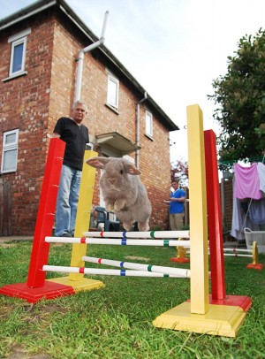 中新網(wǎng)5月4日電 對于一般人家的兔寶寶來說,每天最愜意的事莫過于睡睡懶覺或是啃啃胡蘿卜;然而英國哈斯拉姆家六只寵物兔的生活卻不落俗套,據(jù)英國《每日郵報》1日的報道,在主人的指導(dǎo)下,這六只小兔每天都要接受“跨欄”訓(xùn)練,它們還滿懷信心的要去參加寵物比賽。