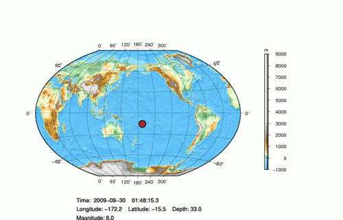 據(jù)中國(guó)地震臺(tái)網(wǎng)測(cè)定,北京時(shí)間9月30日01時(shí)48分,薩摩亞群島地區(qū)(南緯15.5,西經(jīng)172.2) 發(fā)生8.0級(jí)地震,震源深度約33公里。