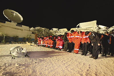 中國國際救援隊隊員于海地時間14日凌晨抵達(dá)聯(lián)海團(tuán)總部大樓營救現(xiàn)場后,已夜以繼日地奮戰(zhàn)了幾十小時。