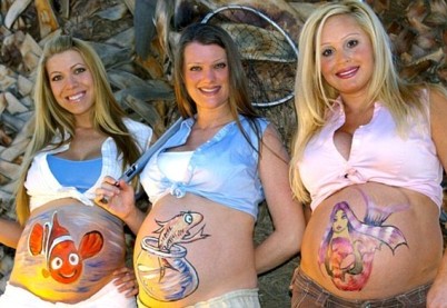 現(xiàn)在越來越多的孕婦作畫裝點(diǎn)大肚子,肚子上的風(fēng)景也是不設(shè)限,包括著名的卡通人物,小碎花,甚至包括未出生的嬰兒等。