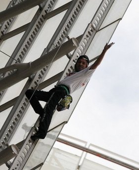羅伯特的行為引來200來名行人圍在樓下觀望、歡呼,在樓內(nèi)辦公的上班族也停下工作,為羅伯特捏著一把汗,但警察卻怒不可遏,在一個天臺將羅伯特逮捕。