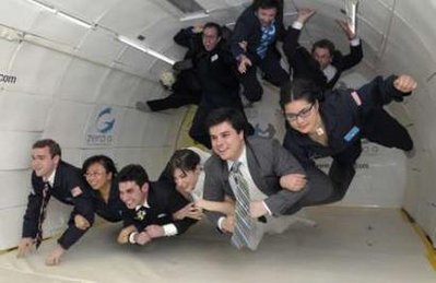 飛機(jī)從佛羅里達(dá)州泰特斯維爾起飛,在墨西哥灣上空飛行的一個小時期間,以拋物線的方式飛行,先后16次疾升俯沖,每次產(chǎn)生30秒的無重力狀態(tài),使所有乘客感受總共7分鐘半的失重狀態(tài),凌空漂浮和互相碰撞。
