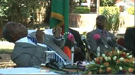 據(jù)法新社報(bào)道,贊比亞總統(tǒng)魯皮亞-班達(dá)25日在總統(tǒng)府外舉行的一個(gè)新聞發(fā)布會(huì)上向記者發(fā)表講話時(shí),一只猴子撒尿在他身上。