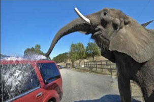 據(jù)臺(tái)灣“今日新聞”報(bào)道,這家動(dòng)物園為了度過經(jīng)濟(jì)危機(jī)難關(guān),除了讓民眾觀賞動(dòng)物園外,還特別提供大象洗車服務(wù)。他們出租兩只亞洲象來替游客們洗車,它們用著象鼻在車上噴水,然后在拿起海綿洗車。這種新奇的洗車方式,讓許多游客都十分驚奇。