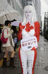 中新網(wǎng)3月25日電 據(jù)日本共同社報(bào)道,美國動(dòng)物保護(hù)組織“PETA”的一名加拿大籍女性成員24日在東京赤坂的加拿大駐日本大使館前,以全身僅穿內(nèi)衣的方式抗議捕獵海豹獲取毛皮。