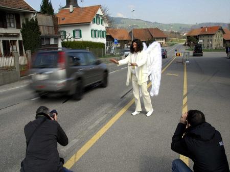 中新網(wǎng)5月13日電 據(jù)臺(tái)灣“今日新聞網(wǎng)”13日?qǐng)?bào)道,瑞典警方為了防止民眾在道路上開快車,就想出一個(gè)“守護(hù)天使”計(jì)劃。警察們雇用一個(gè)演員扮演“白衣天使”,并要他站在路旁勸路過的來車開慢一點(diǎn),以免他們因超速駕駛而出車禍。