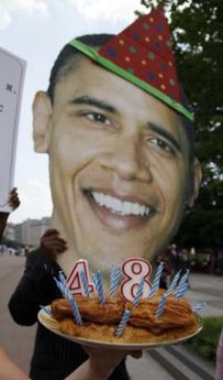 據(jù)“中央社”報道,奧巴馬1961年8月4日生于夏威夷。白宮當天并沒有特別的祝壽活動。中午奧巴馬由副總統(tǒng)拜登陪同,與幾乎所有民主黨籍參議員共進午餐,爭取他們支持他的健保改革政策。