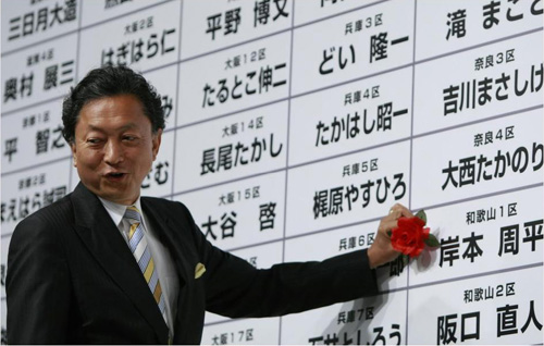 中新網8月31日電 綜合報道 在30日結束的日本第45屆眾議院選舉中,最大在野黨民主黨獲得眾院總數480議席中的308席,而執(zhí)政的自民黨只獲得119席。這意味著民主黨代表鳩山由紀夫擔任首相的新政權即將誕生。據悉,最快將于9月中旬召開的特別國會將提名鳩山出任首相。
