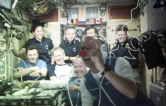 此次在國(guó)際空間站逗留、觀光期間,拉利伯特干起雜技演員老本行,戴上小丑鼻子道具,在零重力狀態(tài)下與自己的孩子們進(jìn)行視頻通話。此外,他還完成了一項(xiàng)特殊使命──在國(guó)際空間站與地面舉行了“地空聯(lián)機(jī)”,呼吁公眾關(guān)注水資源問(wèn)題。