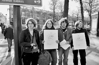 反對(duì)派社會(huì)黨青年團(tuán)不滿讓-薩科齊子憑父貴,4名成員昨日游行前往愛(ài)麗舍宮,拉橫幅要求薩科齊收養(yǎng)失業(yè)年輕人。