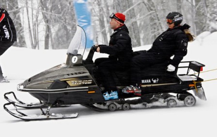 梅普二人在滑雪場乘坐了雪地汽車,梅德韋杰夫還親自駕駛滑雪車,為普京當(dāng)“司機”。其后,二人到附近的咖啡館休息、喝茶。