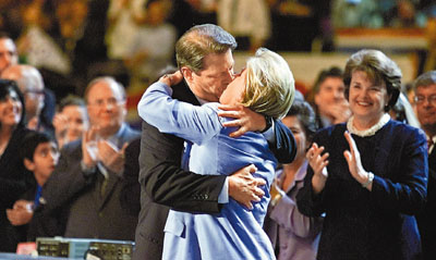 兩人于1970年5月共諧連理,在人前非常恩愛(ài),被視為政壇上的模范夫妻。在2000年民主黨總統(tǒng)提名大會(huì)上,他和蒂珀當(dāng)眾來(lái)了一次長(zhǎng)長(zhǎng)的熱吻,成為佳話,被評(píng)為選競(jìng)中最難忘的時(shí)刻之一。