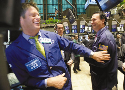 中新網(wǎng)10月15日電 據(jù)香港《文匯報(bào)》報(bào)道,美國華爾街大行摩根大通14日率先公布第3季業(yè)績,盈利是去年同期的近7倍;全球最大計(jì)算機(jī)芯片制造商英特爾的業(yè)績亦較預(yù)期理想;加上9月零售銷售下跌放緩,連串消息好過預(yù)期,刺激歐美股市昨天全面上升。道瓊斯工業(yè)平均指數(shù)14日開市后一路攀升,中段一度沖破萬點(diǎn)大關(guān),是去年10月以來首次。