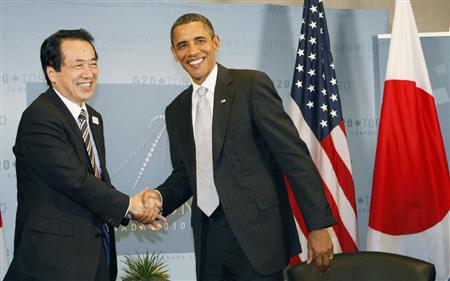 中新網(wǎng)6月29日電 據(jù)日本新聞網(wǎng)28日?qǐng)?bào)道,日本首相菅直人與美國(guó)總統(tǒng)奧巴馬的第一次首腦會(huì)談在加拿大多倫多的一家酒店里舉行,雙方確認(rèn),將借日美安保條約簽署50周年為契機(jī),進(jìn)一步加強(qiáng)雙方的合作,為亞太地區(qū)的和平與穩(wěn)定做出貢獻(xiàn)。