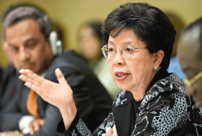 據(jù)香港《文匯報》報道,陳馮富珍在日內(nèi)瓦的世衛(wèi)年會上說:“當我看見更多來自病毒本身和疾病蔓延的跡象,我必然會作出一個困難的決定,不會危及全球人的健康!