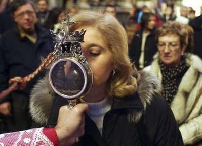 上周,一名51歲的男子因感染甲流,在那不勒斯醫(yī)院不治身亡,成為意大利第一例甲流致死病例。由此,周一,天主教那不勒斯教會與城市當(dāng)局共同決定,為預(yù)防甲流病毒大規(guī)模傳播,將禁止信徒在本月晚些時候開始的宗教節(jié)日上親吻裝有圣人血液的玻璃小瓶。從9月19日開始,這樽裝有天主教圣人圣亞努阿里烏斯血液的玻璃瓶將在那不勒斯市的主教座堂展出一周,展覽期間,無論前來膜拜的信徒有多么虔誠,也不能用嘴親吻瓶子,只能用額頭輕觸瓶子。