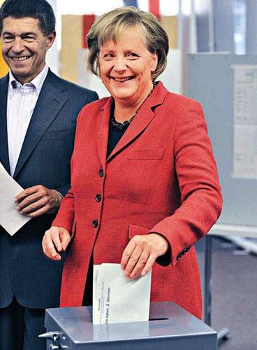 默克爾領(lǐng)軍的基民黨/基社黨(CDU/CSU),隸屬中間偏右的保守陣營,與主張自由競爭市場經(jīng)濟(jì)體制和減稅的右派自民黨政見相近,兩黨組成聯(lián)合政府,德國的政治生態(tài)從此向右轉(zhuǎn),對(duì)投資環(huán)境和工商團(tuán)體有利,外交部長一職,很可能由自民黨的黨魁威斯特威勒(Guido Westerwelle)出任。