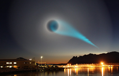 中新網(wǎng)12月11日電 美國(guó)總統(tǒng)奧巴馬赴挪威領(lǐng)取諾貝爾和平獎(jiǎng)前夕,挪威9日早晨出現(xiàn)神秘異象,一圈圈龐大的螺旋形光束籠罩整個(gè)天空,中心拖著一條藍(lán)尾巴,歷時(shí)10多分鐘才消散,數(shù)以千計(jì)的挪威人目擊事件,爭(zhēng)相致電氣象研究所查詢,全球頂尖科學(xué)家和軍事專家也嘖嘖稱奇,有指是俄羅斯導(dǎo)彈發(fā)射失敗,有指是北極光或外星人飛碟(UFO)。俄羅斯國(guó)防部發(fā)言人承認(rèn),前天早上試射“圖錘”(又稱布拉瓦)彈道導(dǎo)彈失敗。