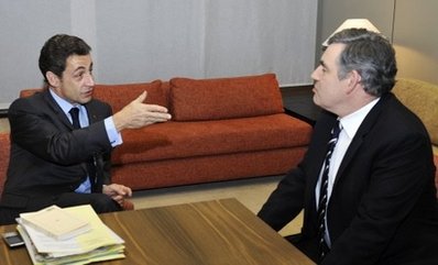 英國(guó)官員稱,英國(guó)首相布朗與法國(guó)總統(tǒng)薩科齊參加在比利時(shí)首都布魯塞爾召開的歐盟領(lǐng)導(dǎo)人峰會(huì)前進(jìn)行了30分鐘的私人會(huì)談,兩人消弭了此前的不和傳言,并聯(lián)手呼吁向全球銀行花紅征收特殊稅。