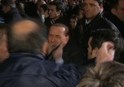 73歲的貝盧斯科尼13日晚間受邀在米蘭參加一個(gè)集會(huì)時(shí)遭一名男子毆打,該男子手持一個(gè)米蘭大教堂的模型打在貝盧斯科尼的臉上,致其面部出血,之后被迅速送往醫(yī)院。醫(yī)生稱其沒有生命危險(xiǎn),只是鼻骨骨折,兩顆牙齒松動(dòng),嘴唇大量出血需要縫針。