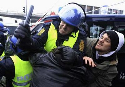 哥本哈根警方發(fā)言人拉森說,已有260位抗議人士在與警方?jīng)_突時(shí)遭拘捕,他并強(qiáng)調(diào),沒有人能闖入貝拉會(huì)展中心。