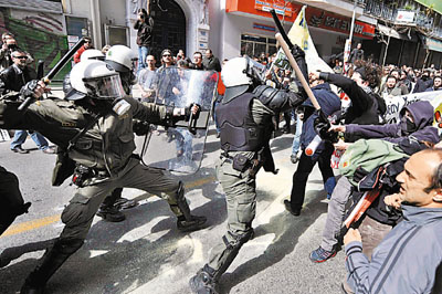 在市場(chǎng)及歐盟的壓力下,陷入債務(wù)危機(jī)的希臘政府不得不宣布采取更加嚴(yán)苛的措施,以換取歐盟支持。希臘政府本月初宣布削減公務(wù)員工資、增加消費(fèi)稅和燃油稅等緊縮政策,預(yù)計(jì)整套方案將為政府增收節(jié)支四十八億歐元。該措施的實(shí)施在希臘國(guó)內(nèi)引起反對(duì)黨以及民眾的強(qiáng)烈反對(duì)。在過去一個(gè)月時(shí)間里,希臘已發(fā)生多起罷工和抗議示威活動(dòng)。