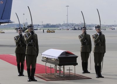 10日卡欽斯基乘坐專機(jī)從華沙飛往俄羅斯斯摩棱斯克市,參加卡廷森林事件70周年紀(jì)念活動(dòng)。飛機(jī)在斯摩棱斯克軍用機(jī)場(chǎng)附近降落時(shí)失事,造成包括卡欽斯基夫婦及眾多政府高官在內(nèi)的96人死亡。